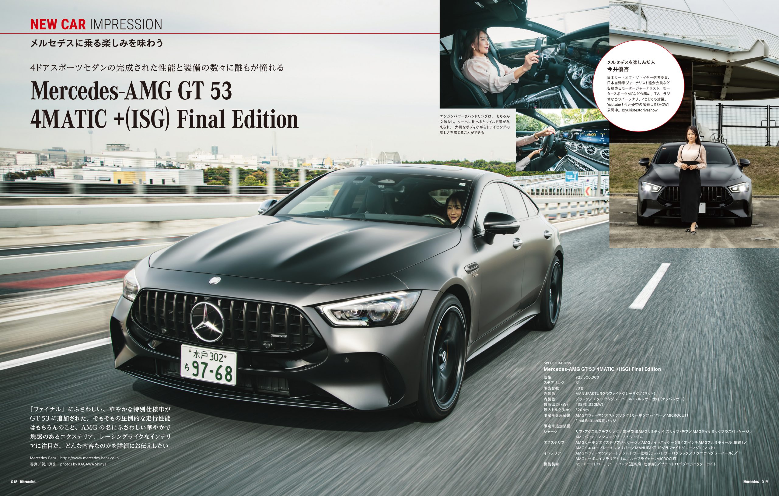 メルセデス・ベンツの最上級グレードとして君臨するAMG。スタンダードモデルでは味わえないスタイリングや性能は1度味わうとやめられないほど魅力が溢れている。そのAMGの特別仕様車であるAMG GT 53 4MATIC +(ISG) Final Editionのインプレッションを皮切りに、特別仕様車を紹介していく。また、AMGの過去を紐解く「AMG HISTORY」は、AMGの歴史の中で強烈な印象を残していった車両をピックアップ。AMGはいつの時代でも注目されてきた存在であったことが、これを読んでもらえれば理解してもらえるはず!! また、ジャパンモビリティショー2025は、CONCEPT AMG GT XXを筆頭に、Maybach SL MonogramやGLC、CLAのEQ Technologyなど次期主力車両となるメルセデスの戦略車を紹介しています。