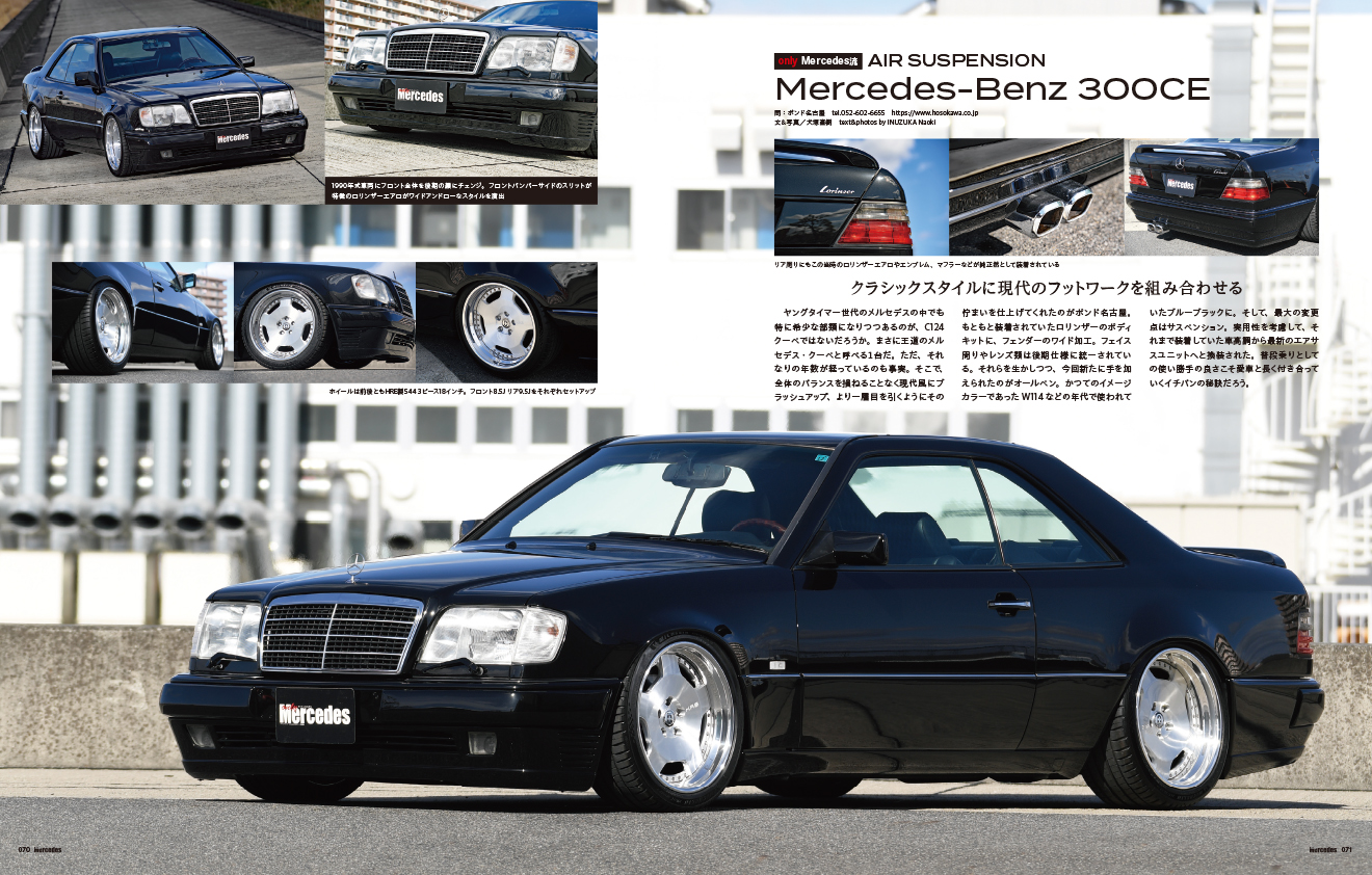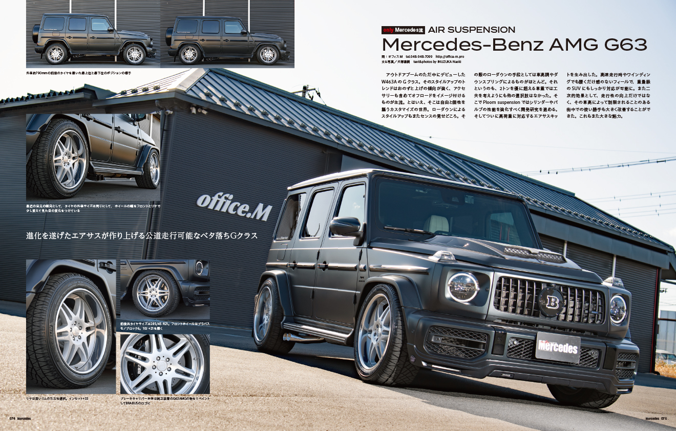 車高を自由にセットできるエアサスペンション。このエアサスペンションをヤングクラシックW124にセット。また、メルセデスAMG G63にも装着し、そのスポーティでスタイリッシュなエアサスペンション効果を紹介。